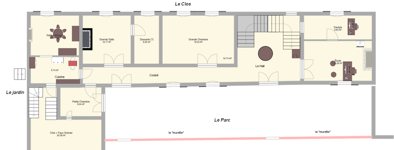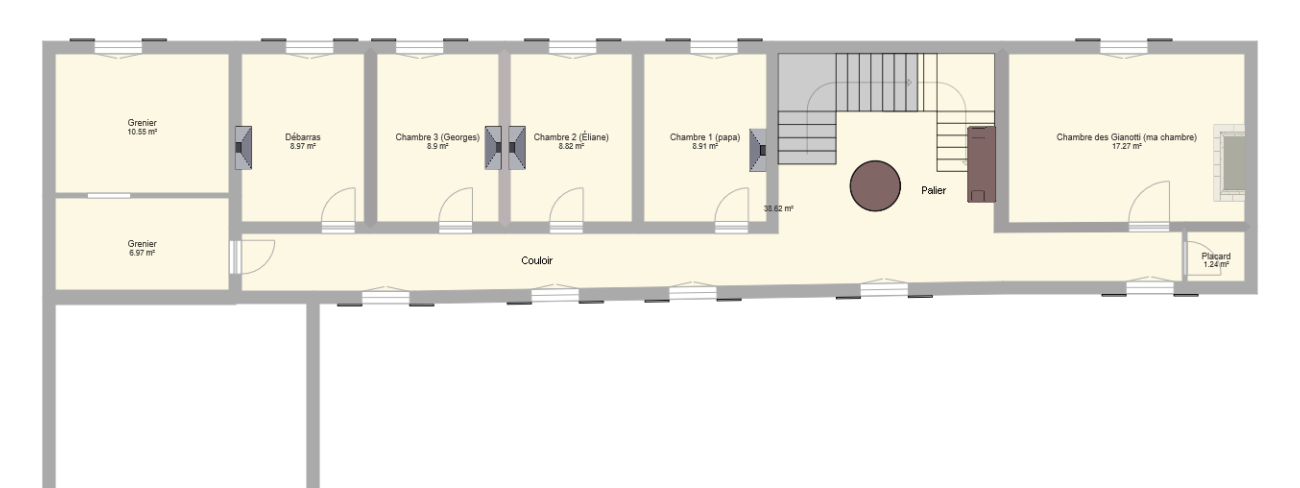 Notre demeure donc est immense, ça c’est vrai, non seulement à cause des dépendances, mais parce que dans le bâtiment principal, une douzaine de pièces (au moins) sont habitables, réparties sur trois niveaux.