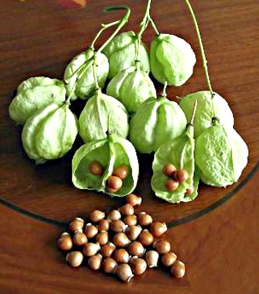 Tous les ans, papa me répète de ne pas toucher ces graines, car «c’est du poison». Et voilà qu’en cherchant aujourd’hui le nom latin de cet arbuste (Staphylea pinnata), j’apprends que non seulement les graines en sont comestibles, mais que par-dessus le marché, elles sont «savoureuses» !