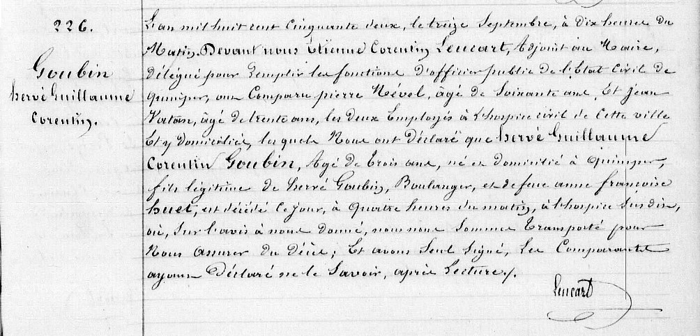 Alain Antoiine (1854-1854) Naissance Mariage Décès